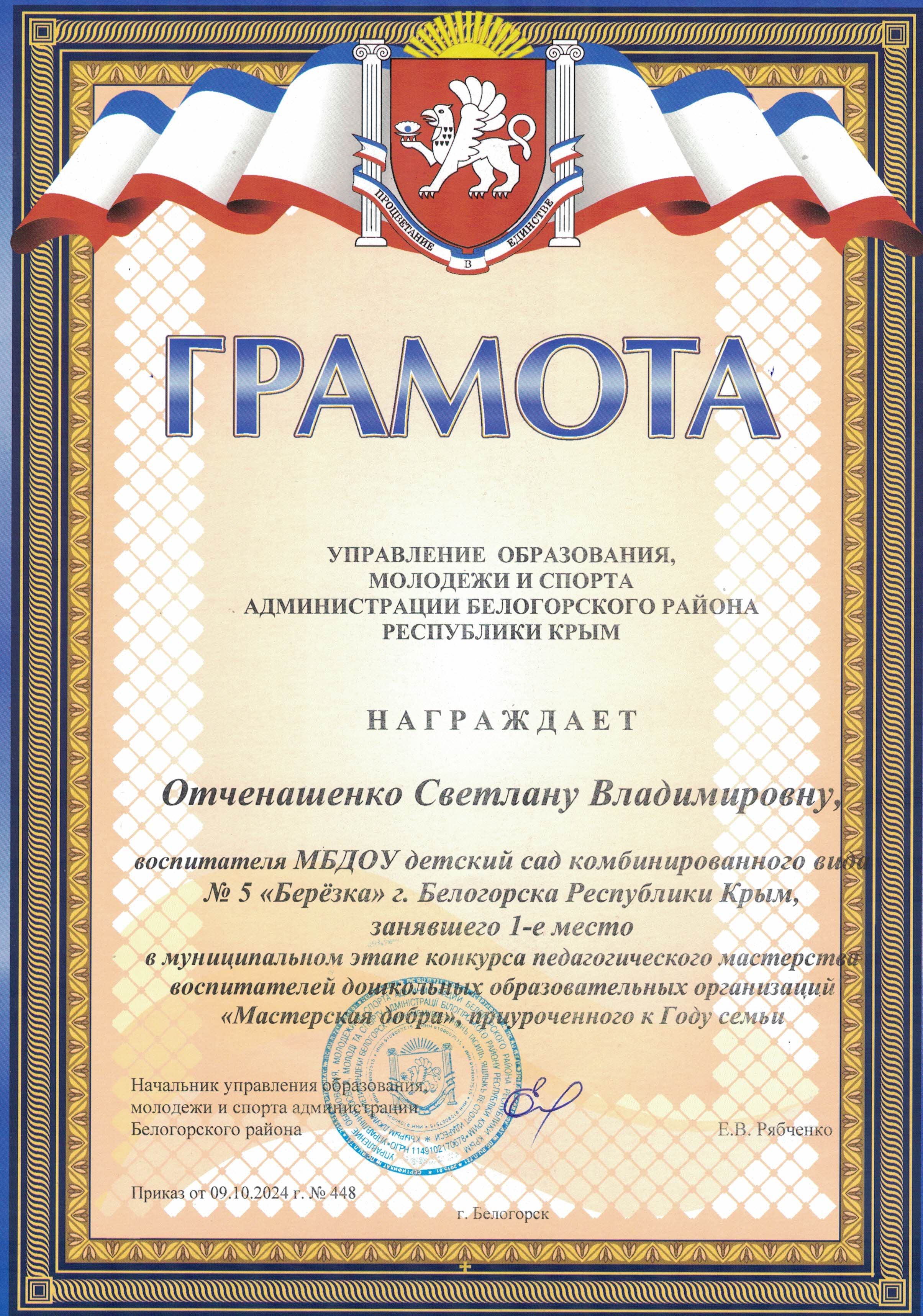 МУНИЦИПАЛЬНОЕ БЮДЖЕТНОЕ ДОШКОЛЬНОЕ ОБРАЗОВАТЕЛЬНОЕ УЧРЕЖДЕНИЕ ДЕТСКИЙ САД КОМБИНИРОВАННОГО ВИДА № 5 "БЕРЕЗКА" Г. БЕЛОГОРСКА РЕСПУБЛИКИ КРЫМ