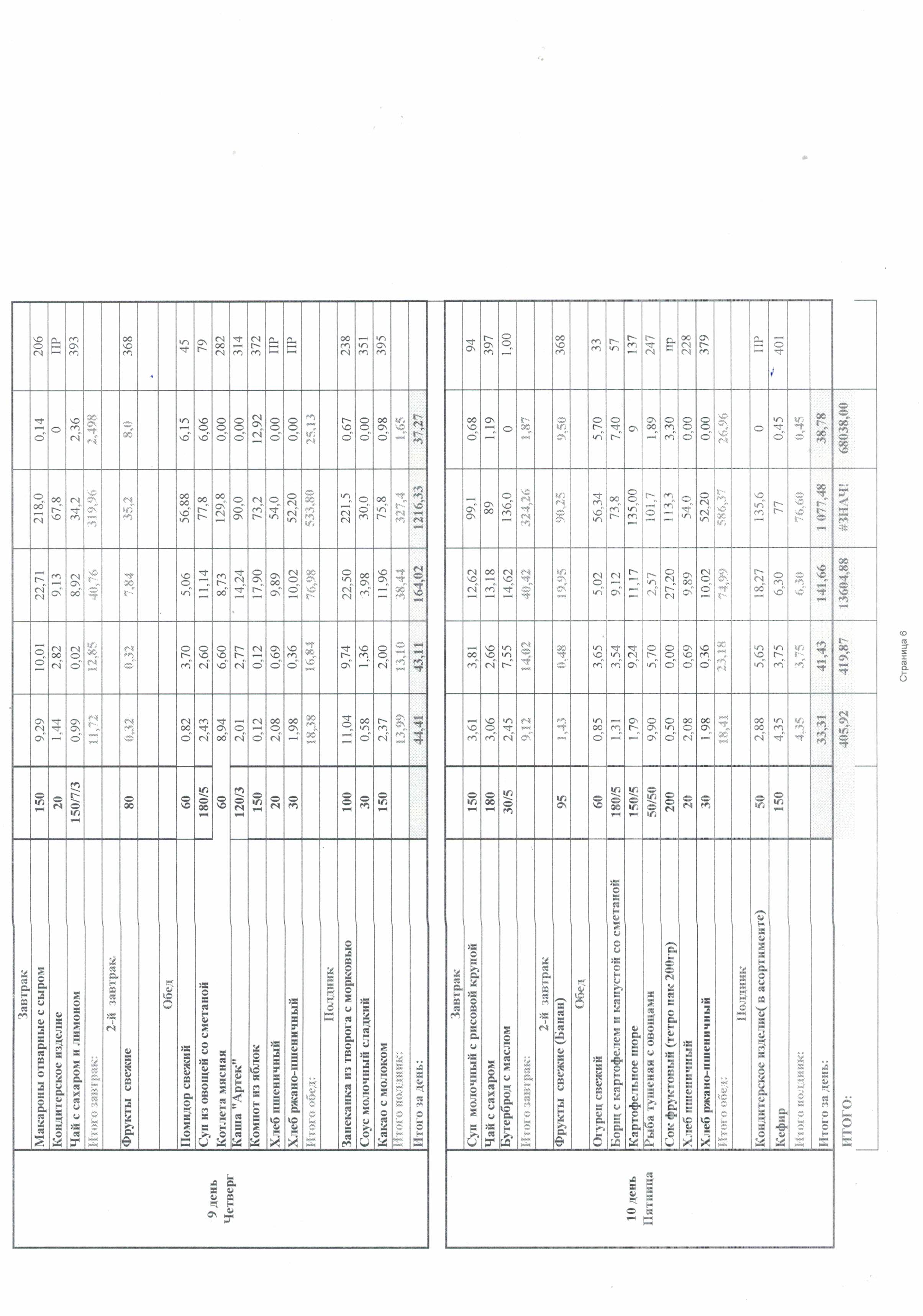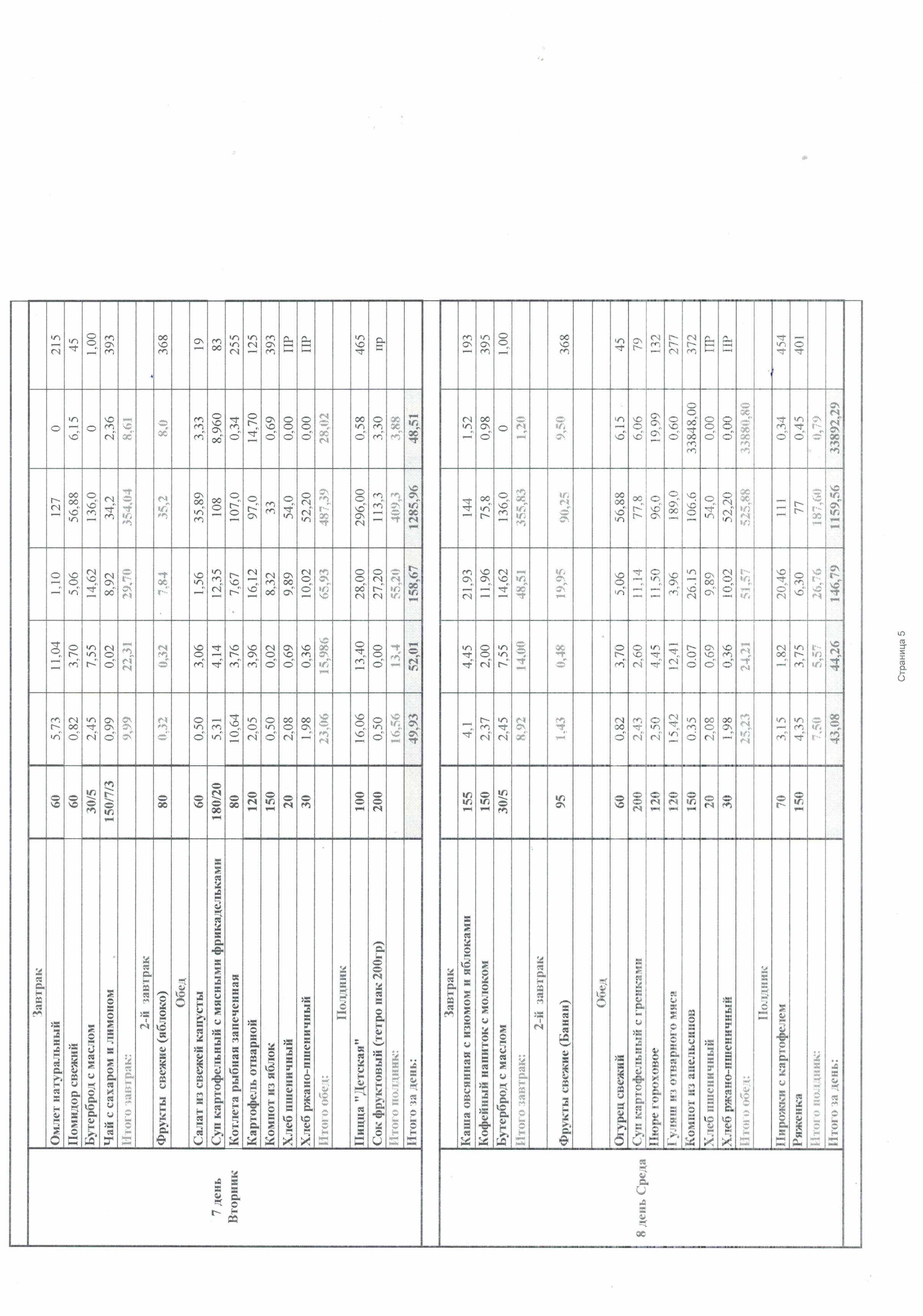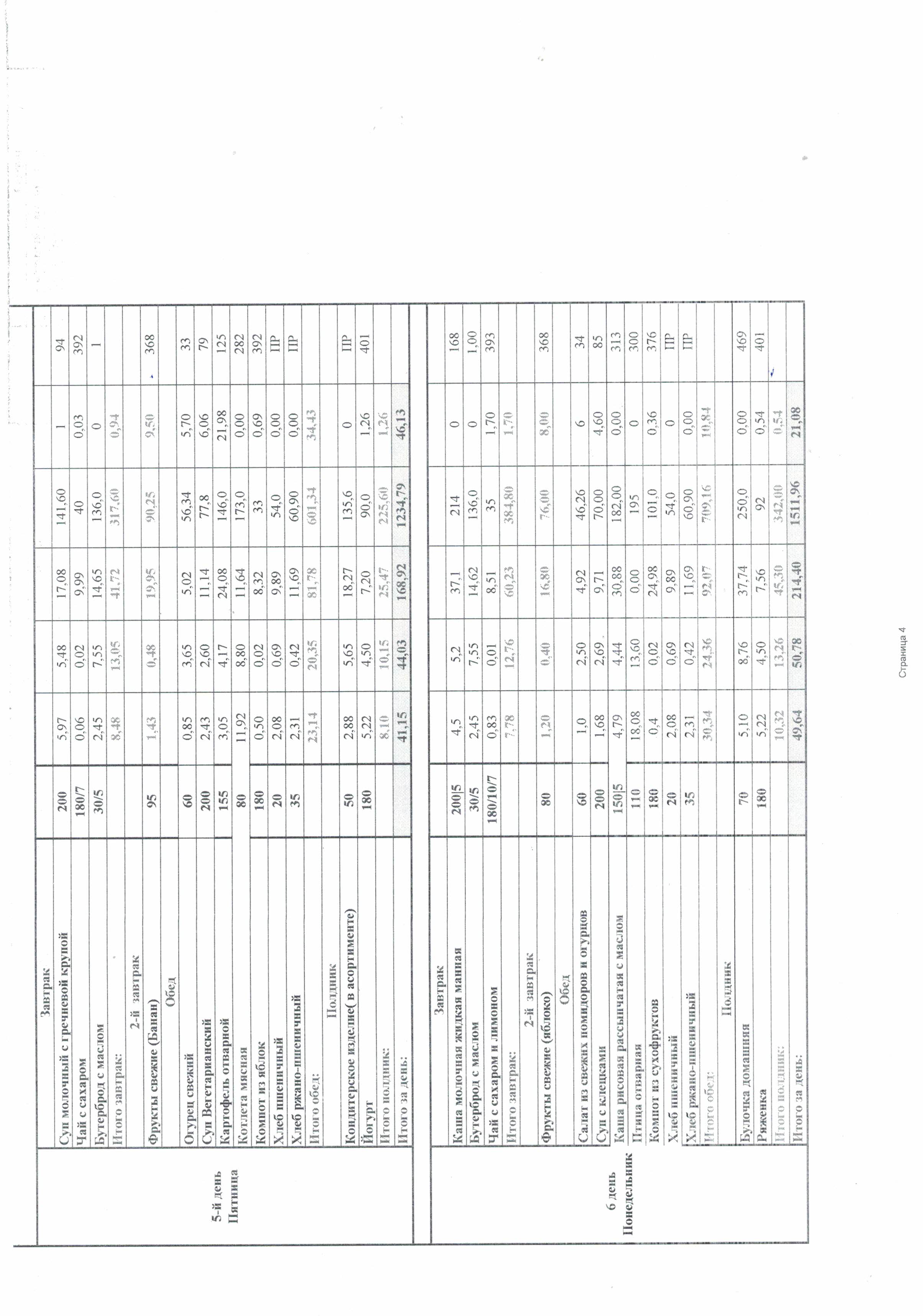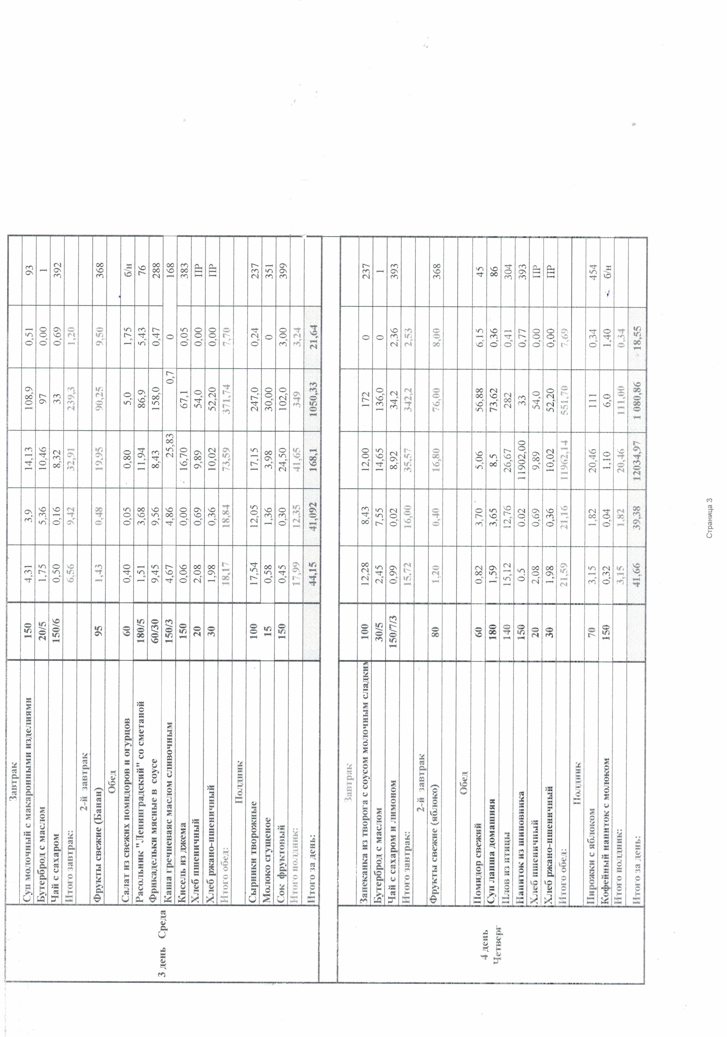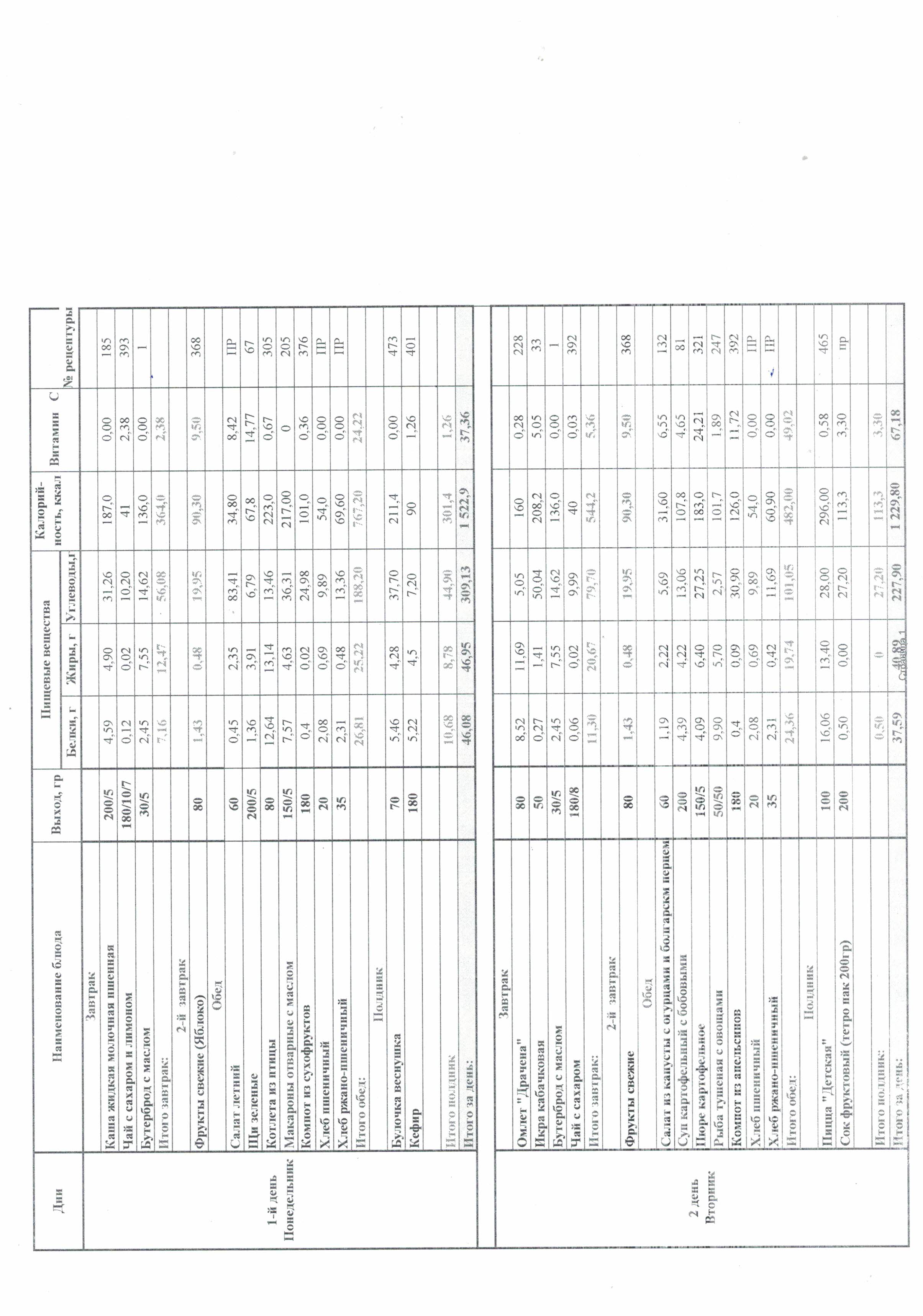 Ежедневно в меню включены: молоко, кисломолочные напитки, мясо или рыба, картофель, овощи, фрукты, хлеб, крупы, сливочное и растительное масло, сахар, соль. Остальные продукты (творог, сметана, птица, сыр, яйцо, соки и другие) включаются 2 - 3 раза в неделю.