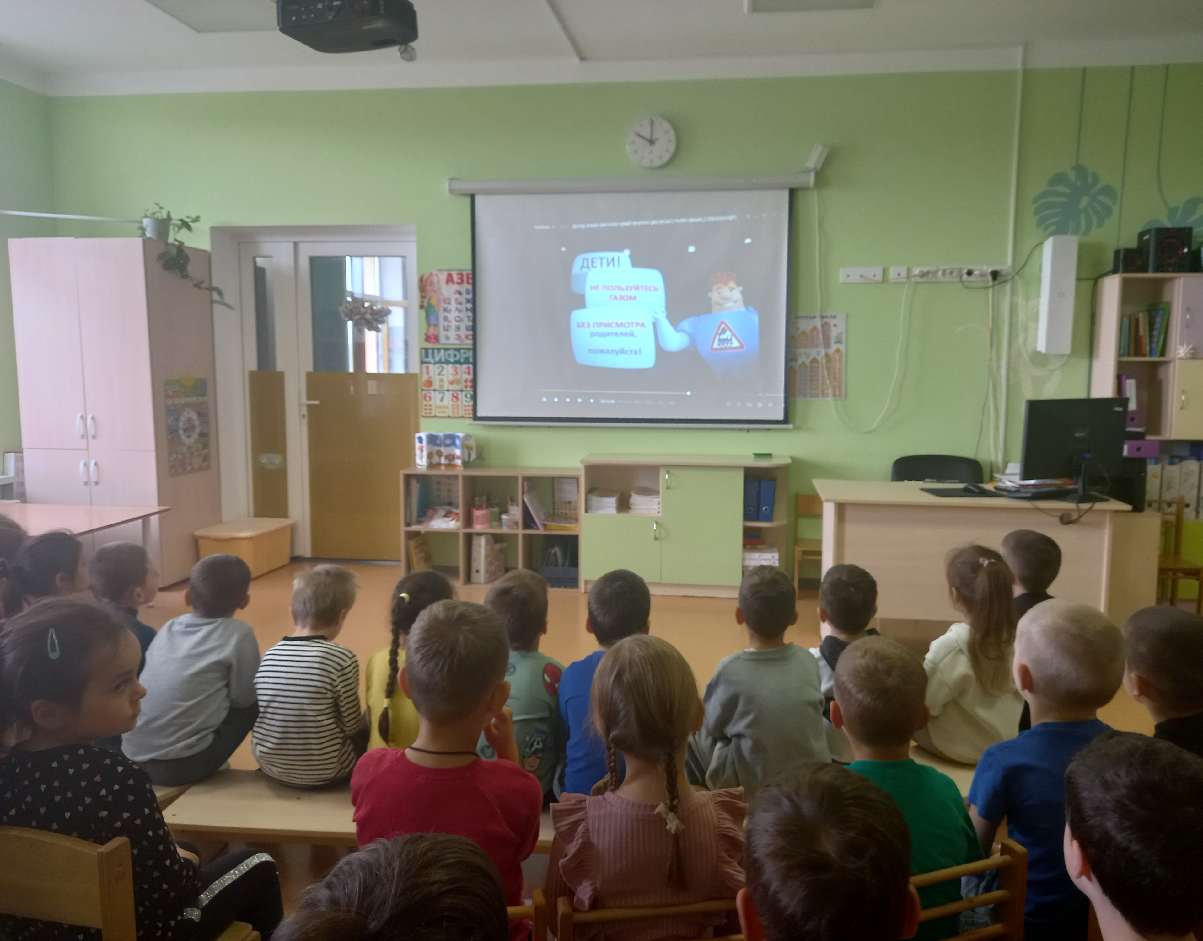 Для воспитанников трёх подготовительных групп была проведена беседа на тему: "Безопасное использование газа в быту, просмотр мультфильма "Повтори много раз эти правила про газ" об опасных для здоровья предметах (газовая плита), с которыми они встречаются в быту, правилах пользования.