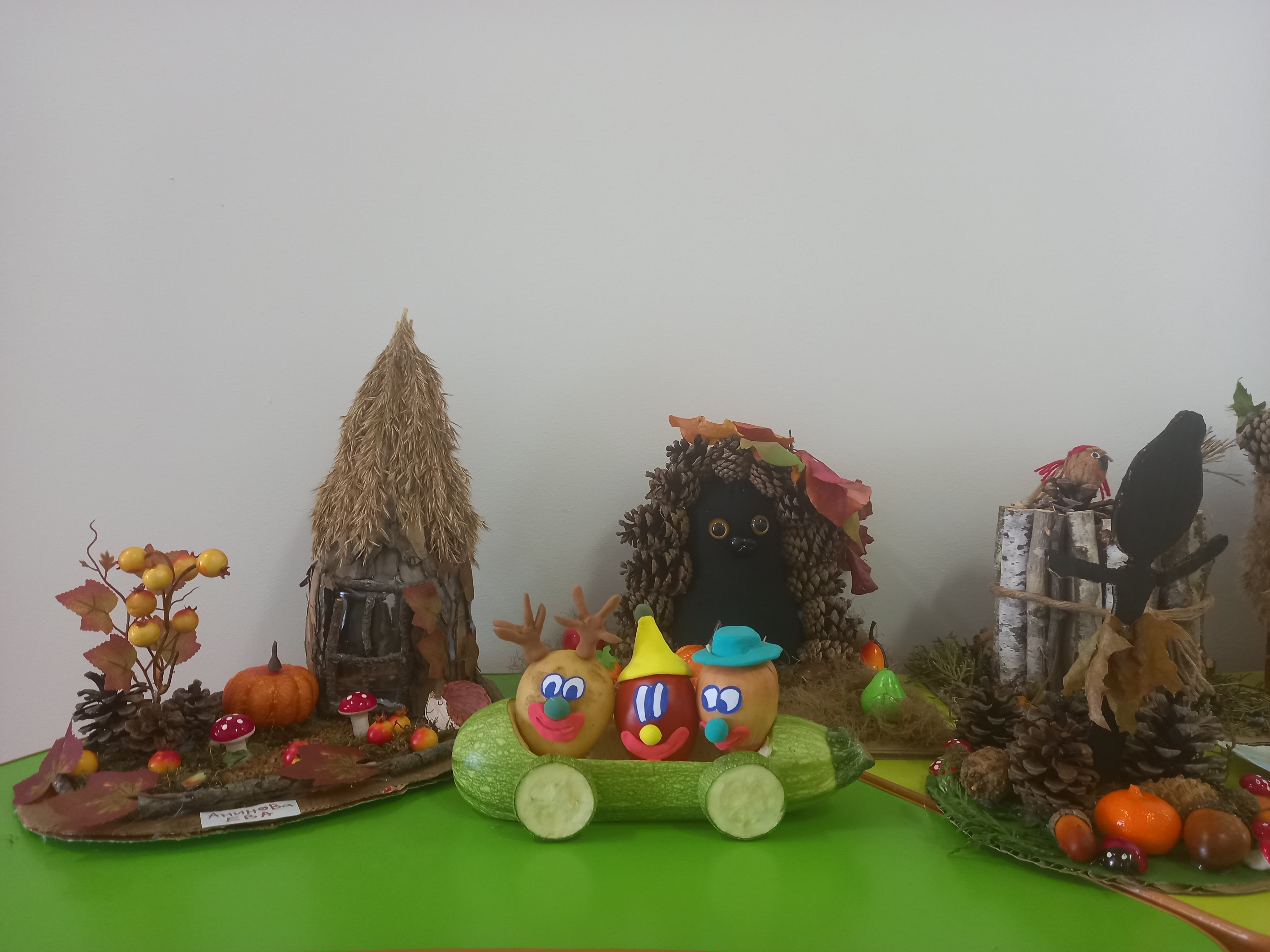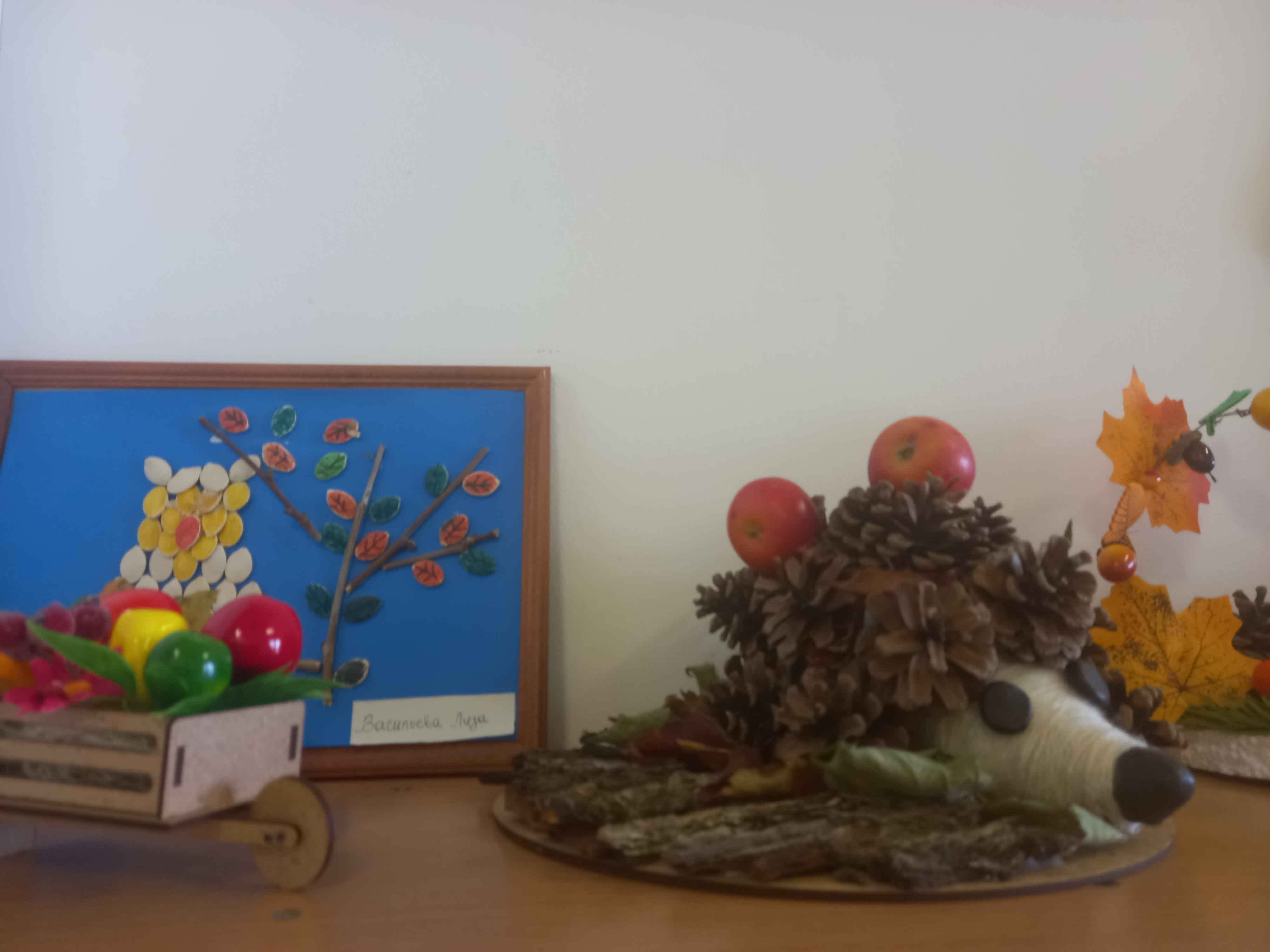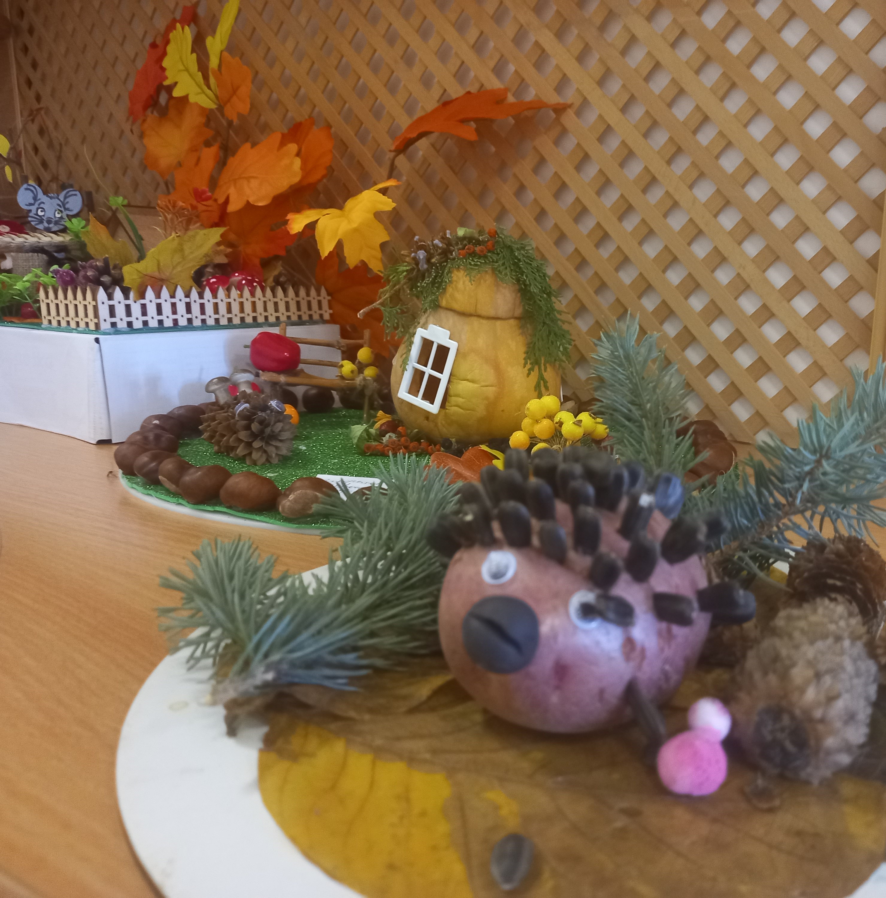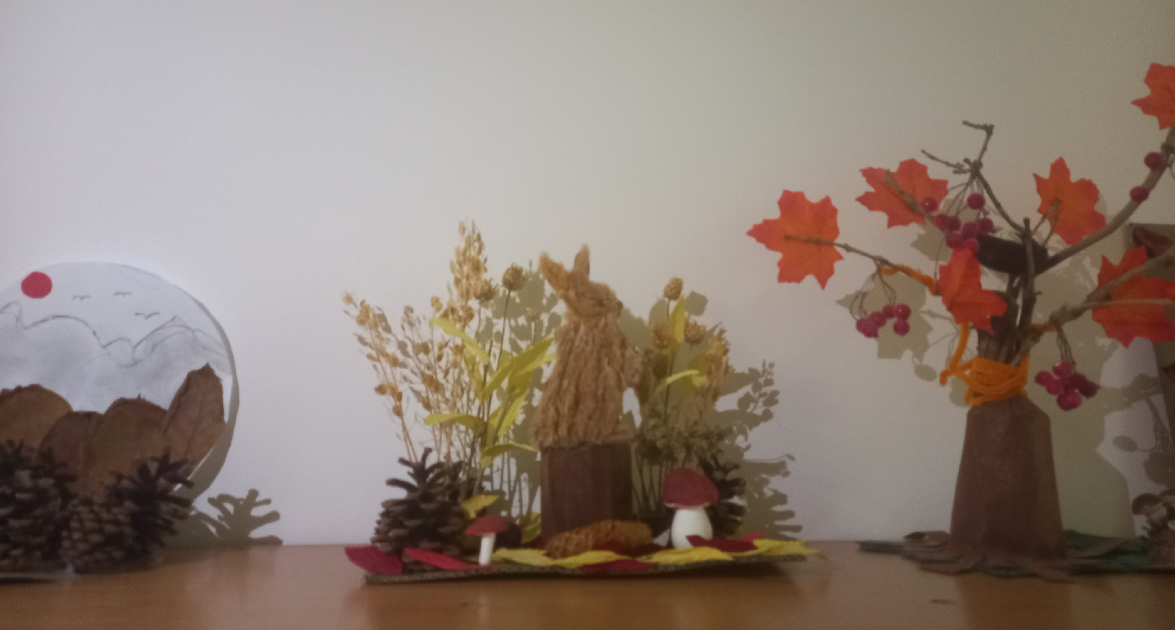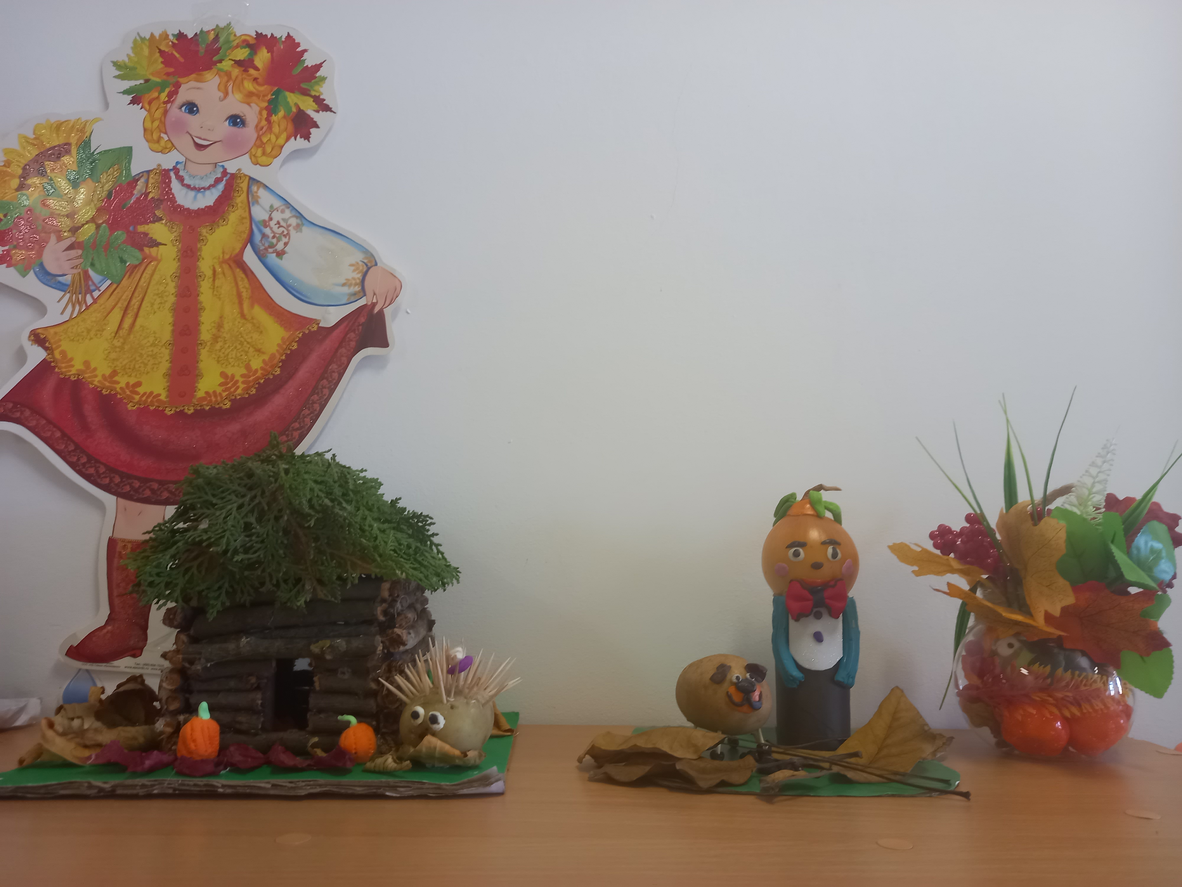 Осень - красивая пора ! Она радует нас щедрым урожаем, яркими осенними красками, расписным золотым нарядом. В детском саду организована выставка осенних поделок из природного материала. Дети вместе с родителями подготовили красочные, неповторимые осенние сюжеты, прославляя осень , её красоту и неповторимость.
