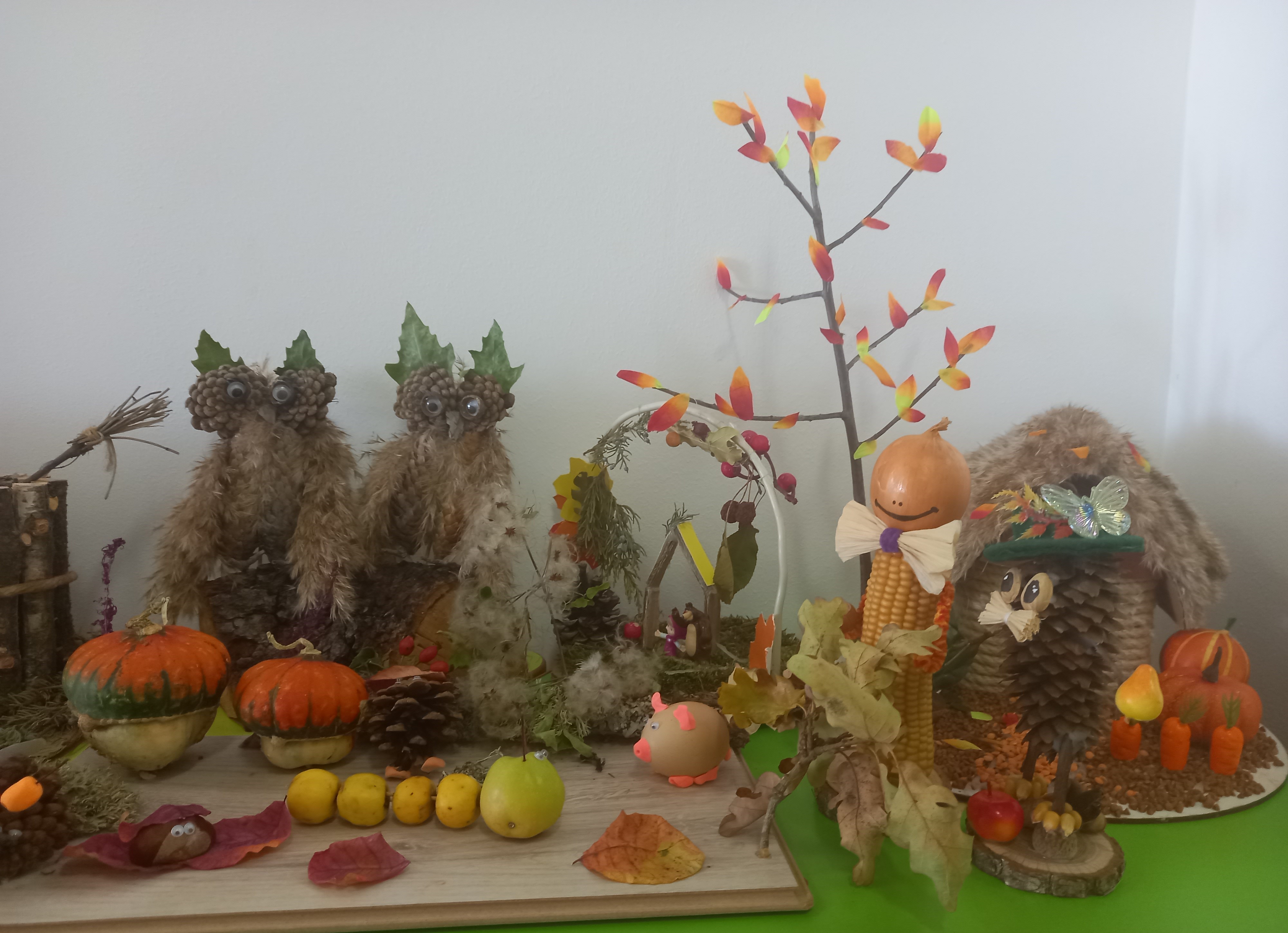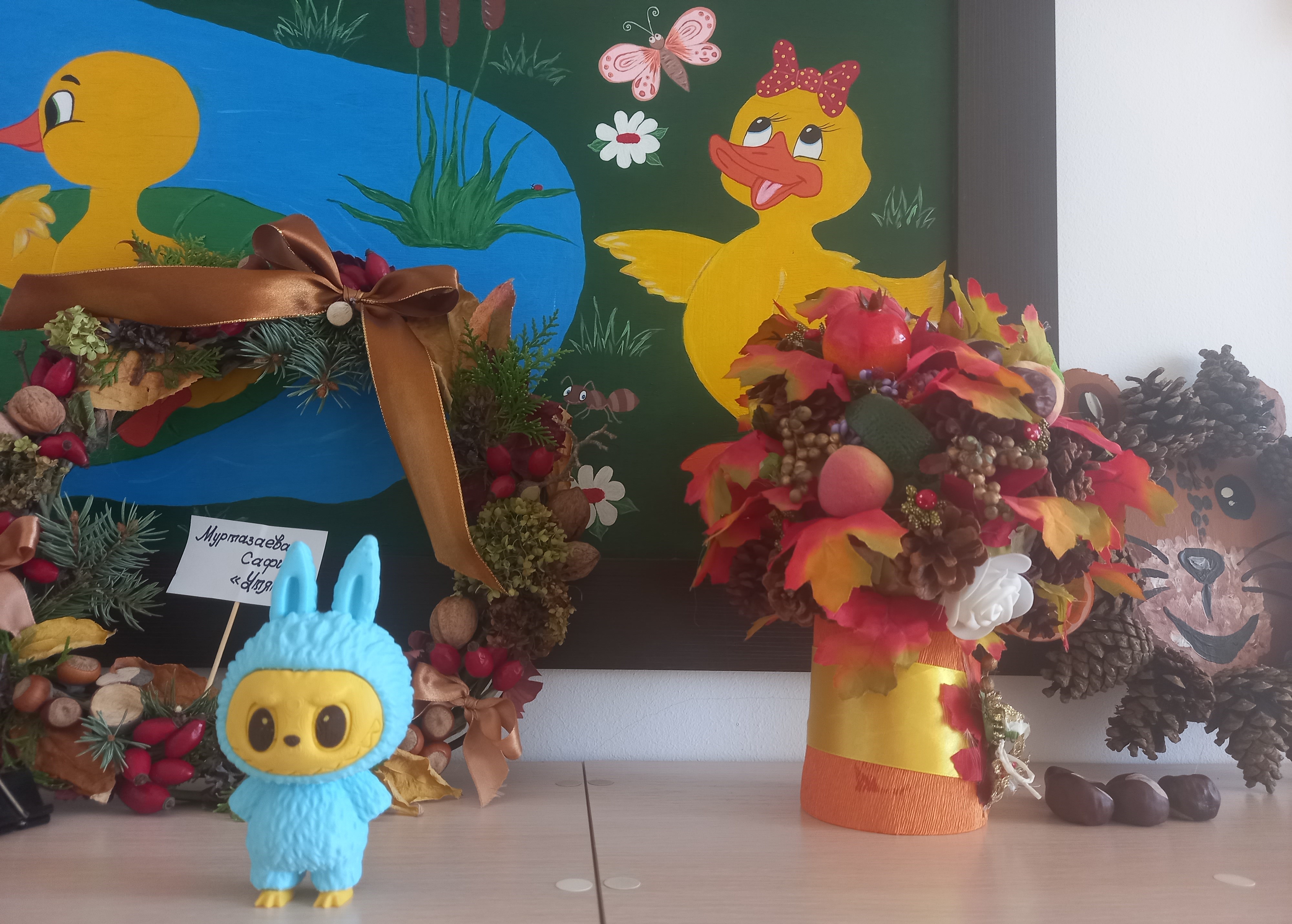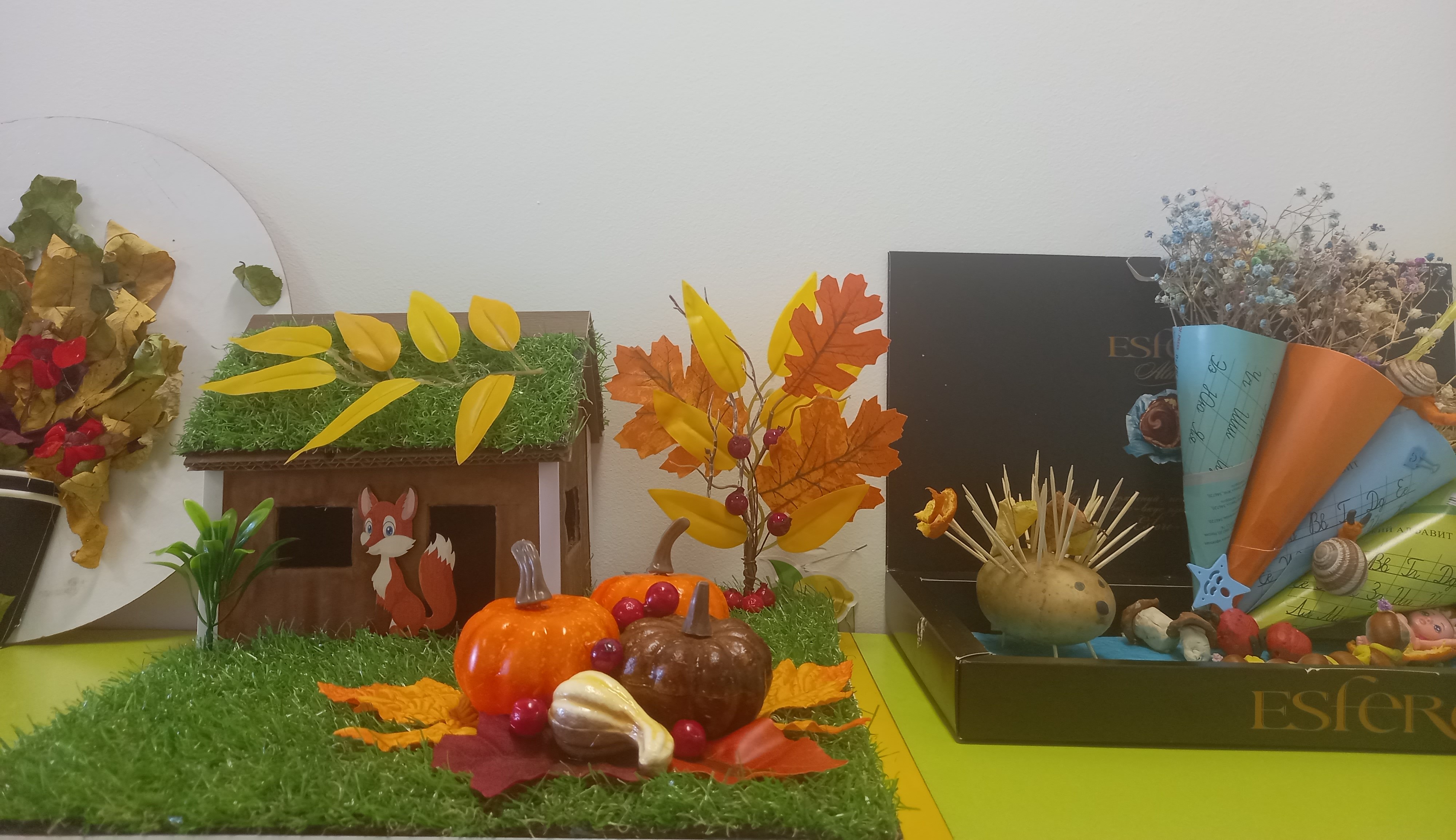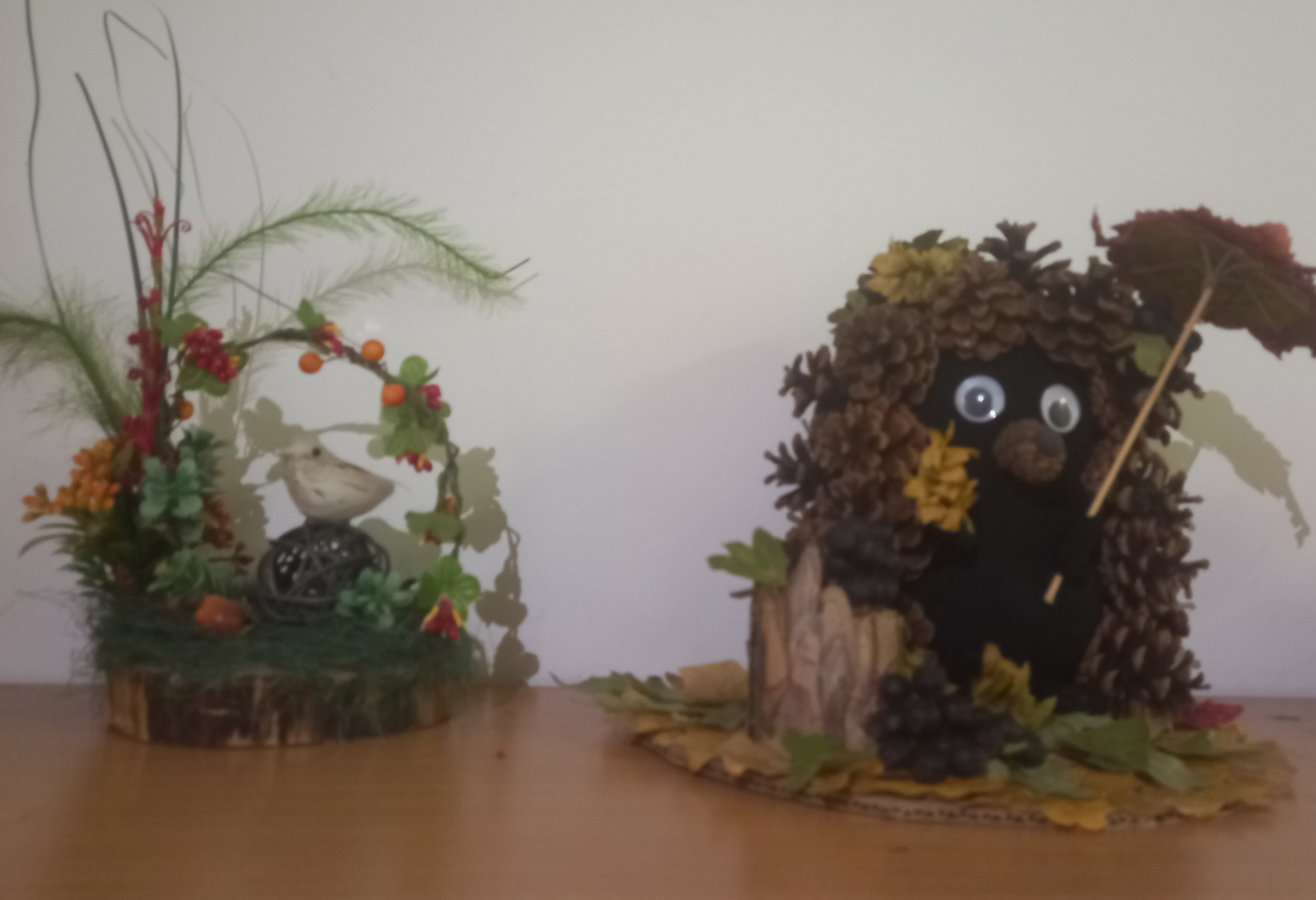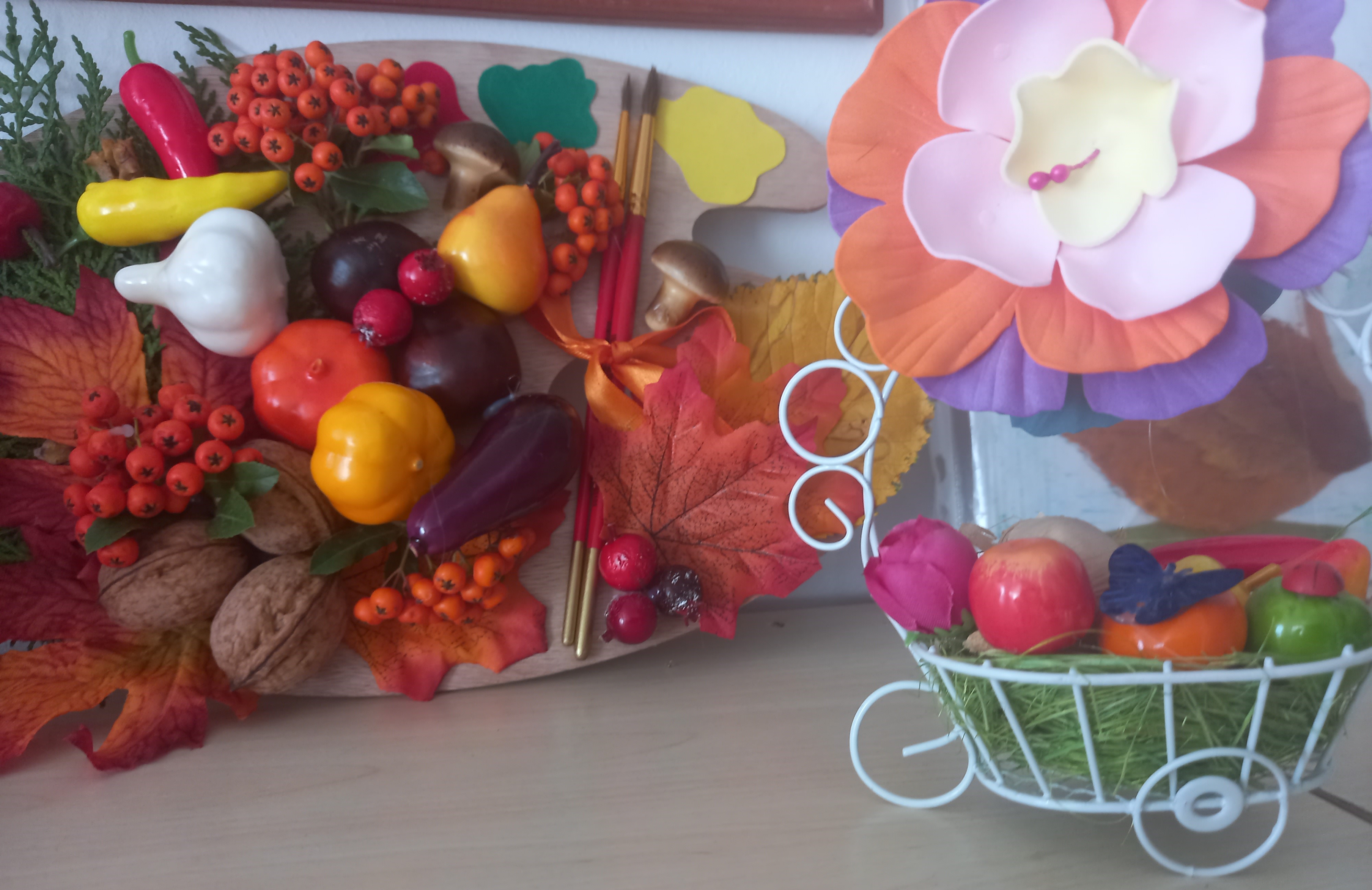Осень - красивая пора ! Она радует нас щедрым урожаем, яркими осенними красками, расписным золотым нарядом. В детском саду организована выставка осенних поделок из природного материала. Дети вместе с родителями подготовили красочные, неповторимые осенние сюжеты, прославляя осень , её красоту и неповторимость.