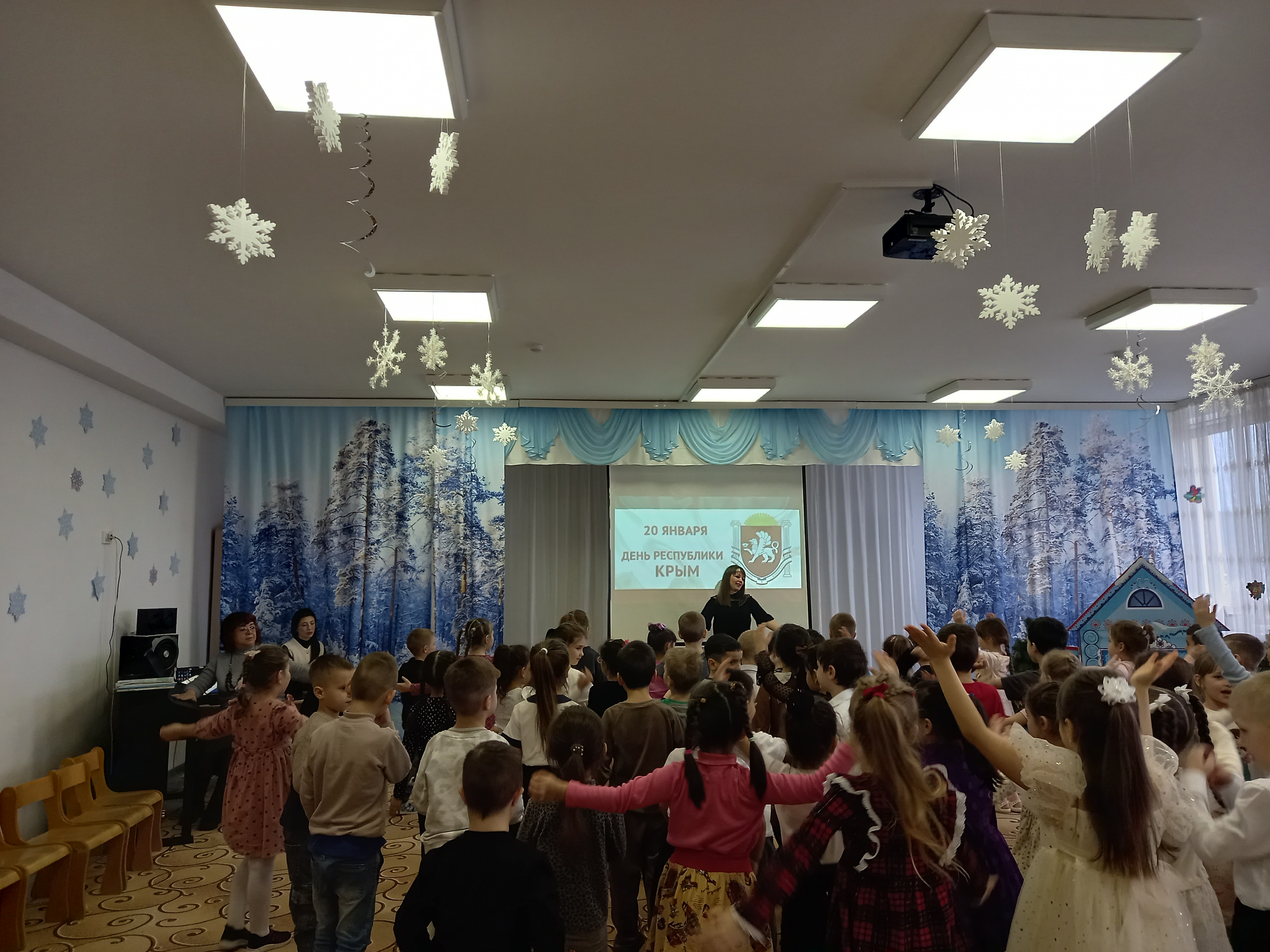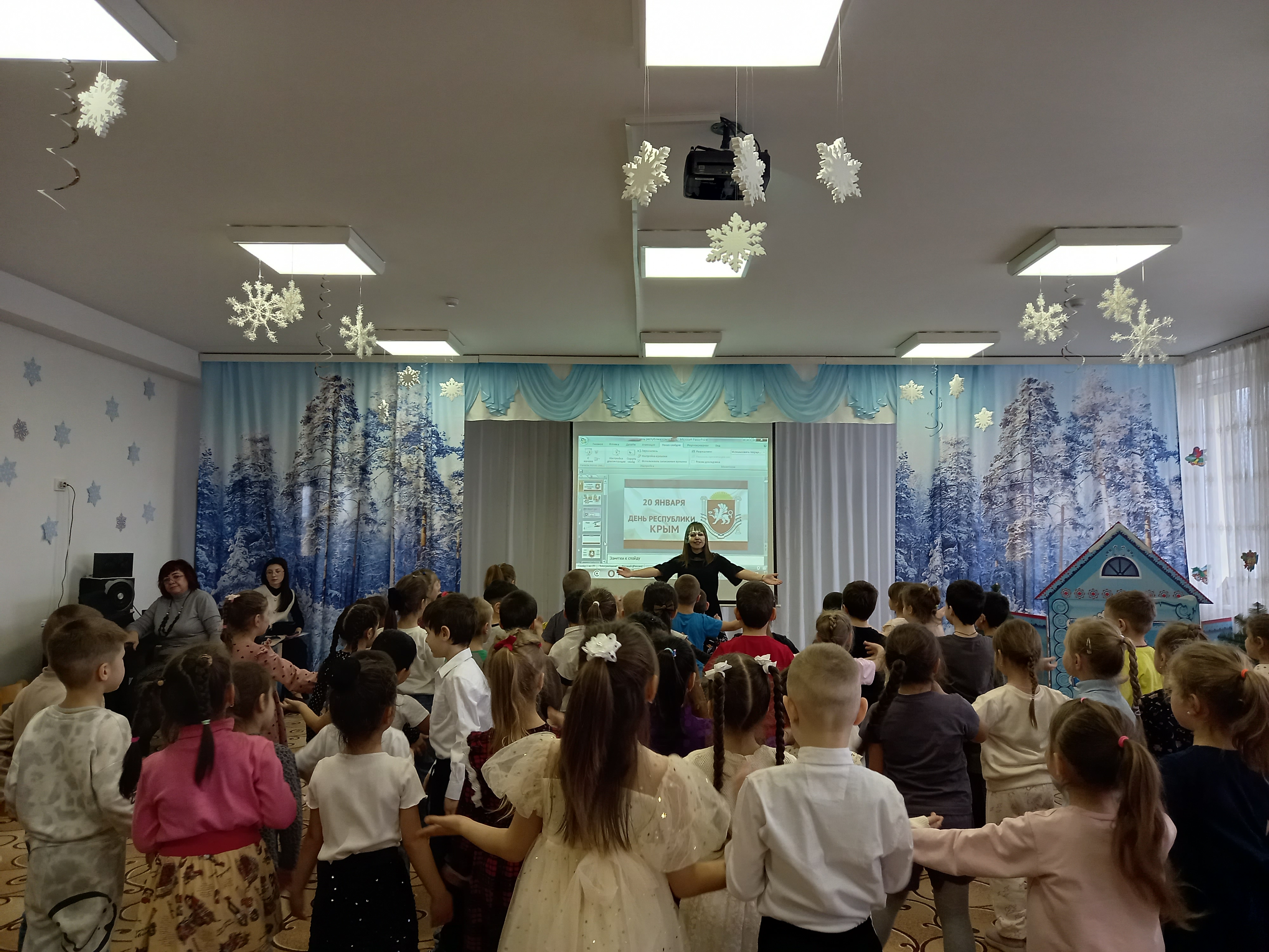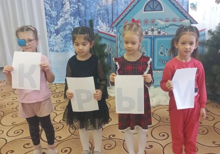Дети узнали о празднике, его особенностях и народных традициях, послушали гимн России и Республики Крым, уточнили представления о символике (флаг, герб). Увлекательно играли в игры : "Назови достопримечательности Крыма и где они находятся", "Отгадай крымский город по иллюстрации".