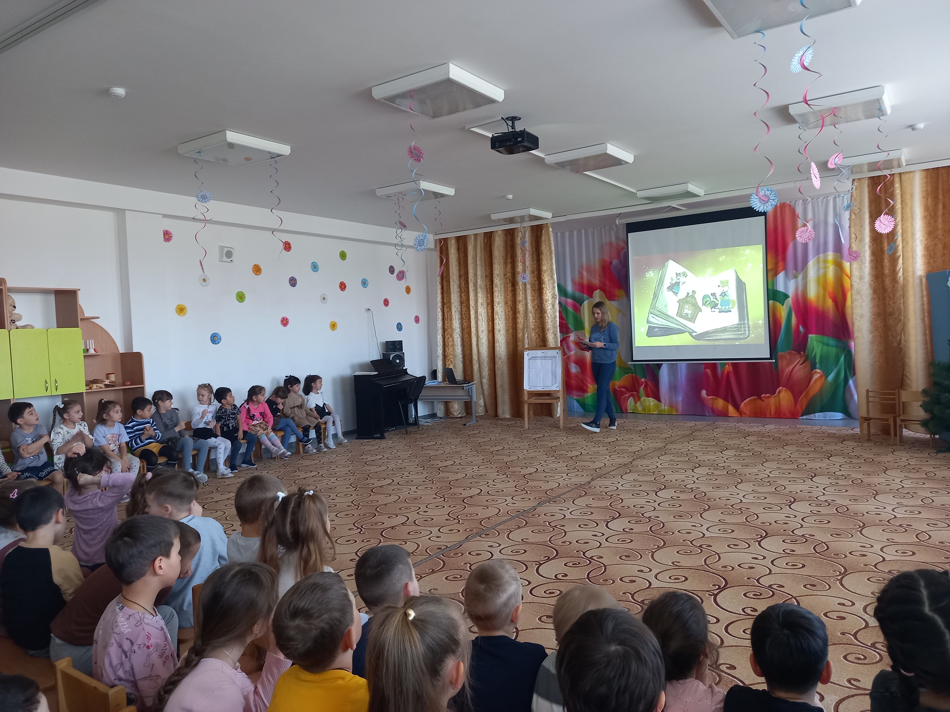 К Неделе детской и юношеской книги представитель районной детской библиотеки им. А.П. Гайдара, совместно с педагогами ДОУ подготовила презентацию, направленную на: знание детских сказок через различные виды игр; развитие познавательного интереса и творческих способностей в области художественной литературы, воспитание бережного отношения к книге.