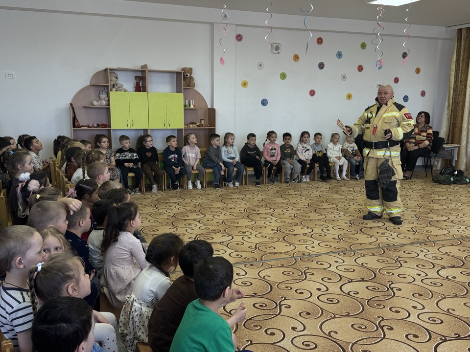 В рамках реализации Плана основных мероприятий в области гражданской обороны, предупреждения и ликвидации чрезвычайных ситуаций, обеспечения пожарной безопасности и безопасности людей на водных объектах на 2026 год, а также в связи с 40-летием со дня катастрофы на Чернобольской АЭС, представителями пожарно-спасательной части №8 ФГКУ «1 пожарно-спасательного отряда ФПС по РК» (капитан внутренней службы Лагодный С.Д., сержант внутренней службы Грига Д.Л., прапорщик внутренней службы Краев Д.А.) 08.04 2026 года для детей старшего дошкольного возраста проведено мероприятие о соблюдении мер пожарной безопасности. Тема беседы была направлена на обучение детей основам пожарной безопасности, формирования навыков осторожного обращения с огнем и пожароопасными предметами, соблюдения правил безопасного поведения в случае возникновения пожара, привития интереса к профессии пожарного. Безопасность жизни ребенка и охрана его здоровья – одна из главных задач дошкольного воспитания. При этом важно не только оберегать детей, но и формировать у них представление о наиболее опасных ситуациях, о необходимости соблюдения мер предосторожности, прививать навыки безопасного для жизни поведения.