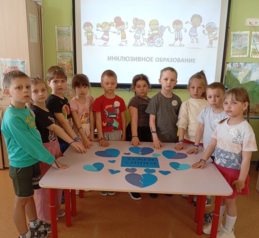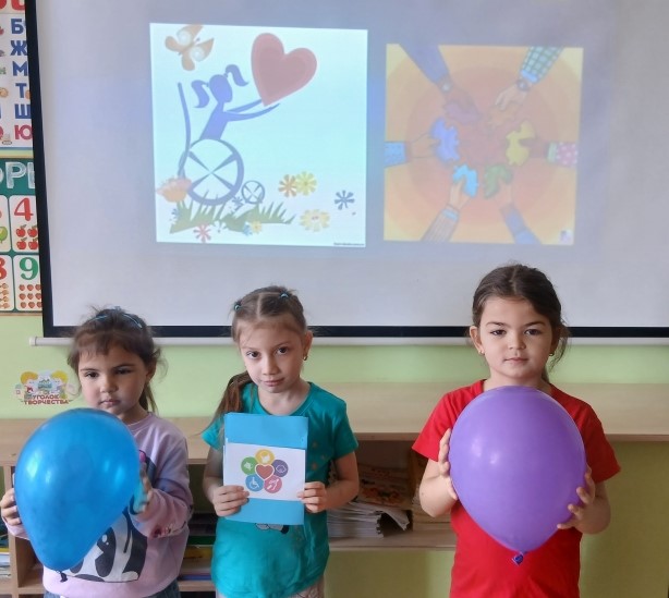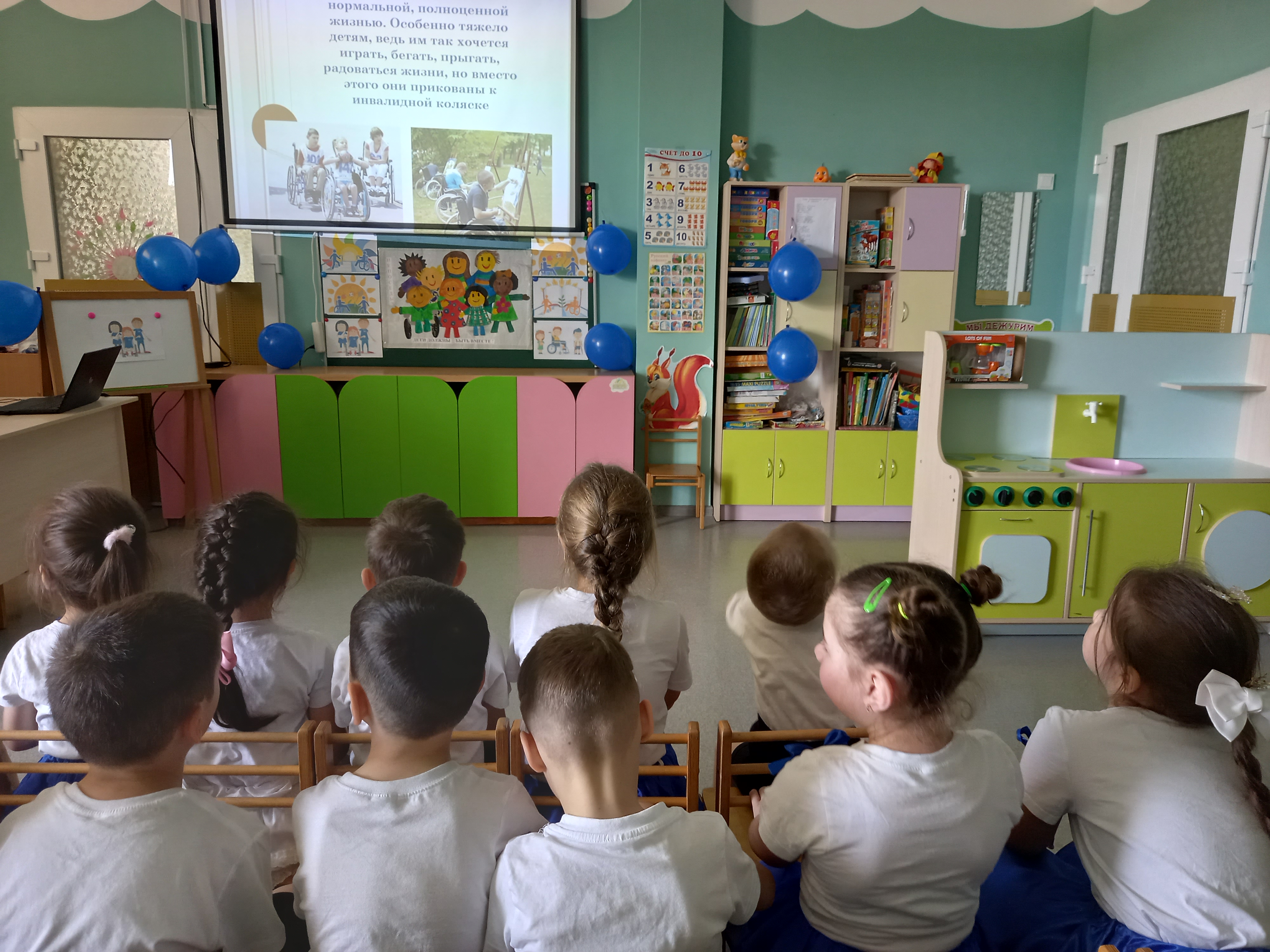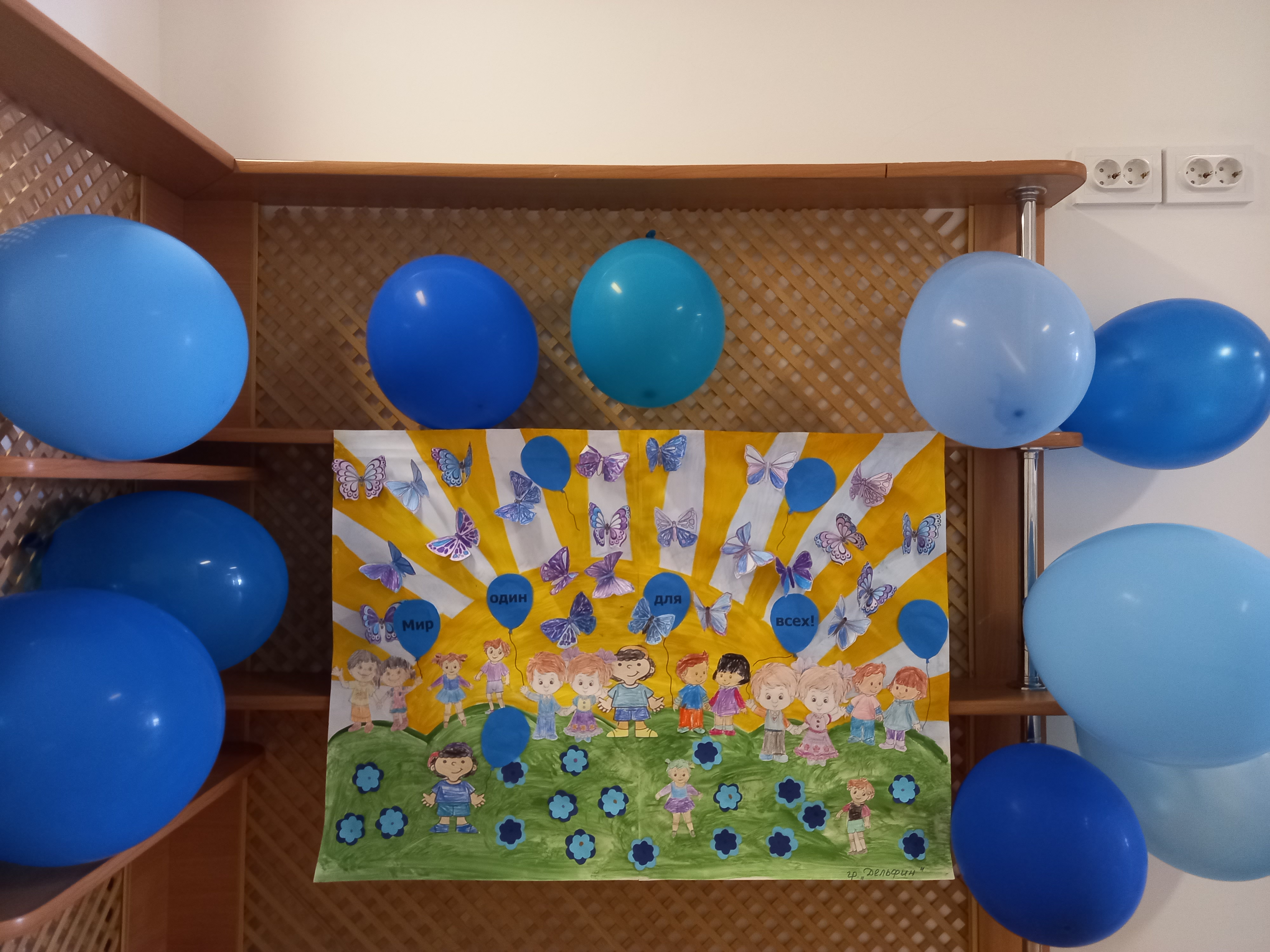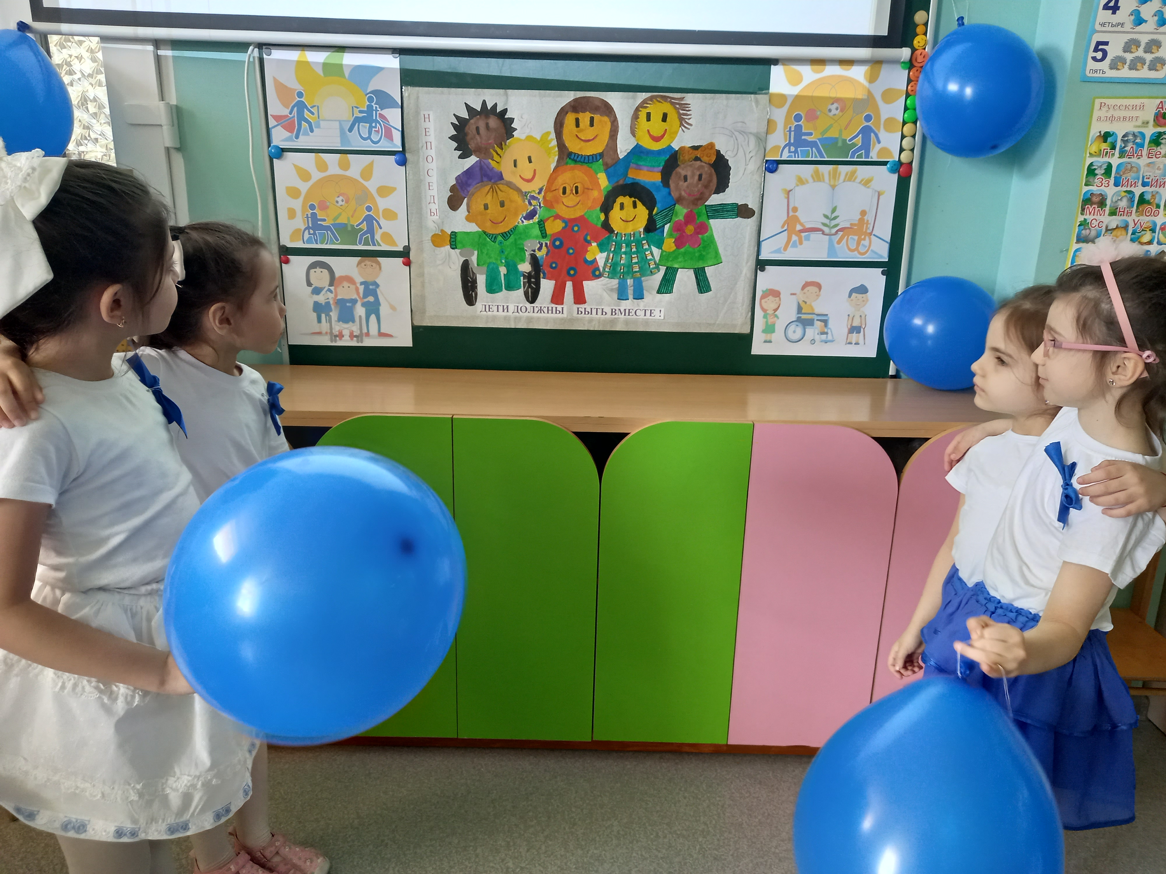 Педагоги старших и подготовительных групп провели с детьми тематические беседы, просмотр видеопрезентации на темы: «Если добрый ты», «Дети должны быть вместе». В ДОУ оформлена выставка детских коллективных работ : «Мир глазами детей». В физкультурном зале организованы игры: «Вместе весело шагать по просторам», " Вместе мы можем!", направленные на умение играть вместе, сопереживать, помогать друг другу учить действовать сообща и поддерживать друг друга. С воспитанниками инклюзивных групп проведены -акция и флэшмоб «Зажги синим», направленные на формирование эмоционально - комфортной образовательной среды, способствующей социально-личностному развитию детей дошкольного возраста.